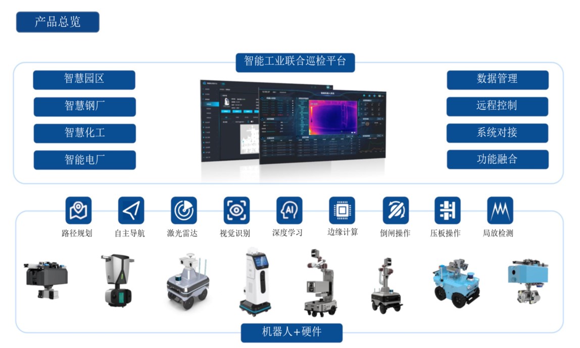 工业智能机器人系统可广泛应用于电力变电站、冶金化工园区、综合管廊、数据中心等各种应用场景。